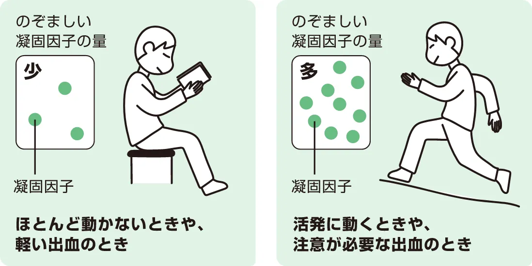自分の活動や出血のぐあいにあわせた凝固因子の量を体の中に確保する!